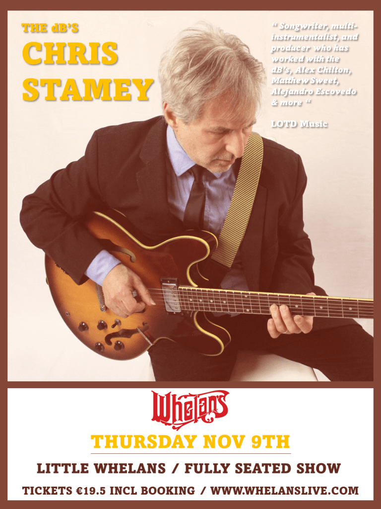 To celebrate over 50 years of recording with the likes of Alex Chilton, The dB’s, Big Star, Alejandro Escovedo & more and the release of his new album The Great Escape Chris Stamey comes to Whelans Nov 9th for a fully seated show.